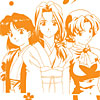 今回は3種類のデザインをご用意しました! ひとつめが「新・青い鳥」こちらは松原先生の書き下ろしで、花組さんが舞台衣装で登場です。ふたつめが「帝劇三人娘、米田、大神」、3つめが「薔薇組とダンディ団」の3種類、オリジナル団扇です。 情緒のある竹製団扇なら、夏の暑さをきっと吹き飛ばしてくれるはず♪ |