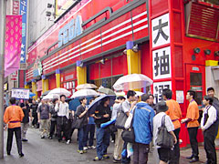 オープン当日朝7時からの整理券配布。霧雨の降る中、多くの方に集まっていただきました。ありがとうございます! |